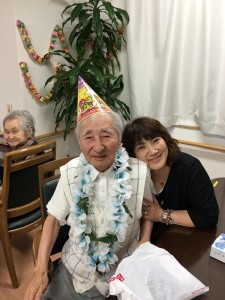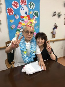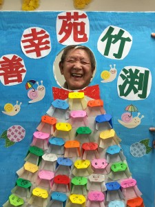 6月は久宝寺緑地公園に遠足に行って来ました(^o^) 外で食べるお弁当は最高?????と、喜んで頂けました(^O^) たまたま、鷹の調教されている方に出会い、記念にパチリ???? 今月の誕生者の3名の利用者様にはプレゼントも喜んで頂けスタッフ共々楽しいお誕生日会をする事が出来ました(^O^) 梅雨にも負けない利用者様が個々に作成された笑顔のてるてる坊主が素敵????