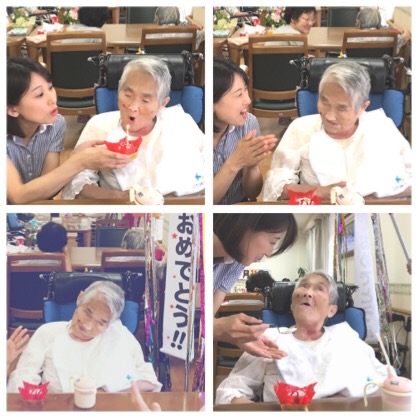 今日はM様の82歳の誕生日をお祝いしました! 頭部の不随意運動がある方ですが、しっかりロウソクを吹き消して下さいました♪