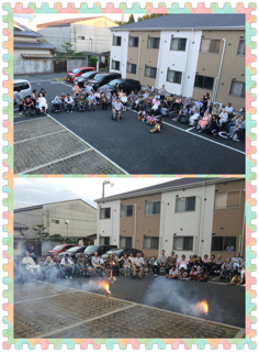 こんばんは? 先日…雨で延期になった花火大会… 今日も怪しげな天気で心配しましたが… みんなの願いが叶って 「花火大会」が出来ました(^ ^) スタッフの子供達も参加したので 最後までにぎやかでした。 その子供達も片付けのお手伝いをしたり… 入居者様も手持ち花火をしたり… 音の鳴る花火にみんなでビックリしたり… スタッフも暑い中…お疲れ様でした(^-^)/