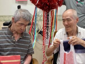 今月お誕生日のお二人をみんなでお祝し、準備運動