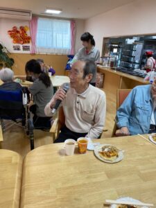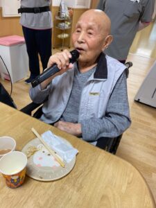 カラオケでは、恥ずかしがり屋の利用者様も歌ってくれました
