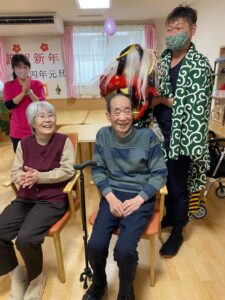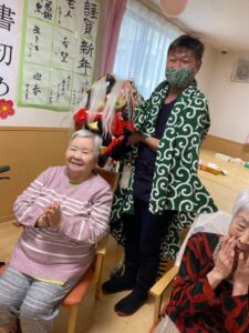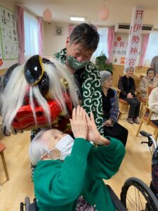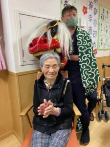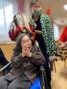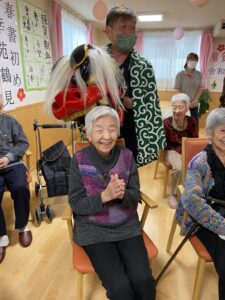 新年の始まりに、利用者様の無病息災を願い施設に獅子舞が来てくれました