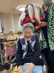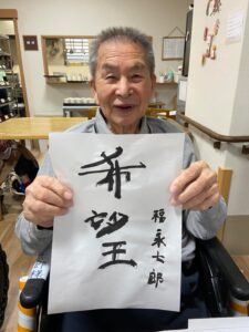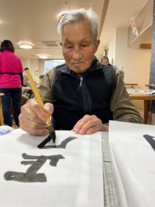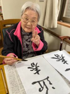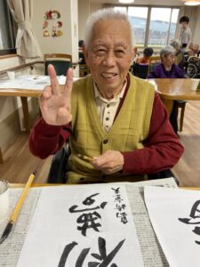 1月のレクは元旦の獅子舞に続き2日から5回に分けて書き初めをして頂きました。