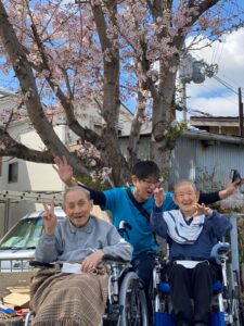 4月のレクは天気の良い日に利用者様と近くの公園や神社に桜を見に出掛けました〜
