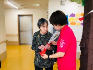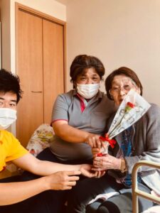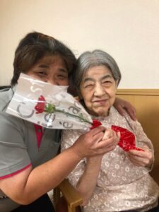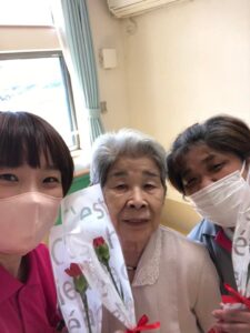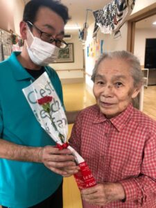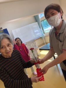 5月は母の日って事で施設に綺麗なカーネーションを飾り、利用者様にもお渡ししました