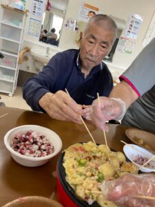たこ焼きパーティーは初めての方々も多く、「作るの楽しいなぁ」「美味しい」「またやりたいお願いします」と大好評でした