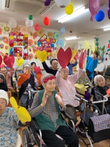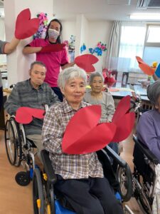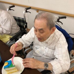 その後スタッフ・利用者様とでエビカニ体操で身体をほぐし、待ちに待った甘〜いケーキ