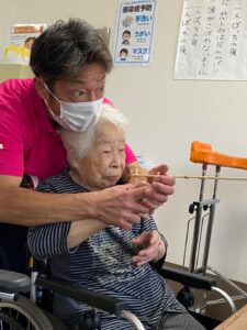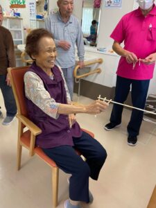 夏祭りとして昔懐かしのワタアメ作りと射的ゲームをしました