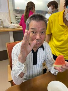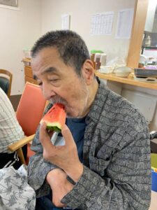 美味しいスイカを頂いて8月のお誕生日会をしました