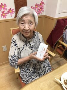 これからも利用者様が、元気で健康で笑って過ごせますようにと願いを込めて、お祝いに紅白饅頭をお配りさせて頂きました