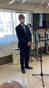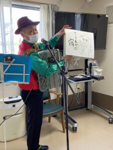 美善グループ代表とアコーディオン奏者の福ちゃんをお招きし一緒にお祝いしていただきました