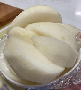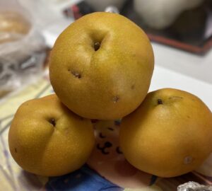今日のおやつは「梨」です。