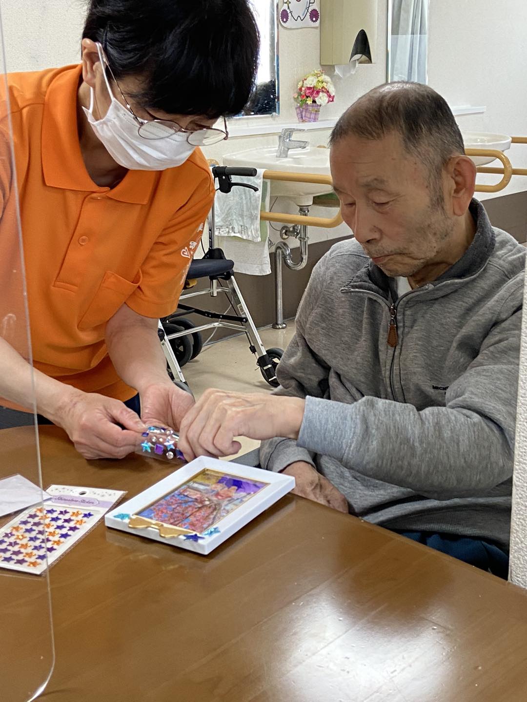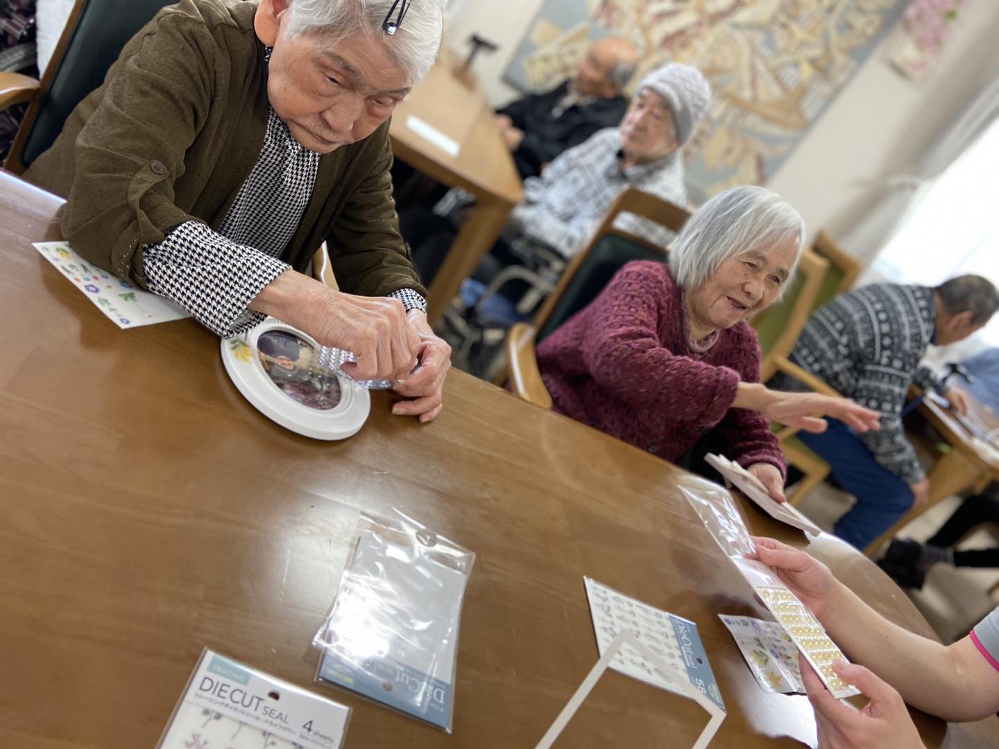 細かくシールをつける作業に集中していた方も
