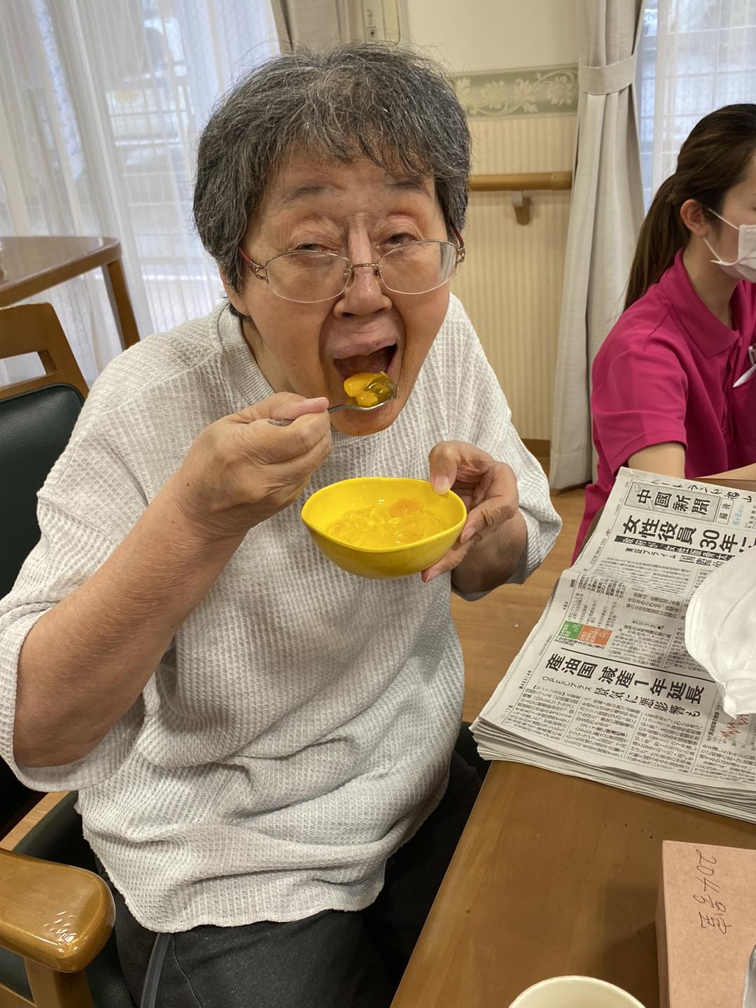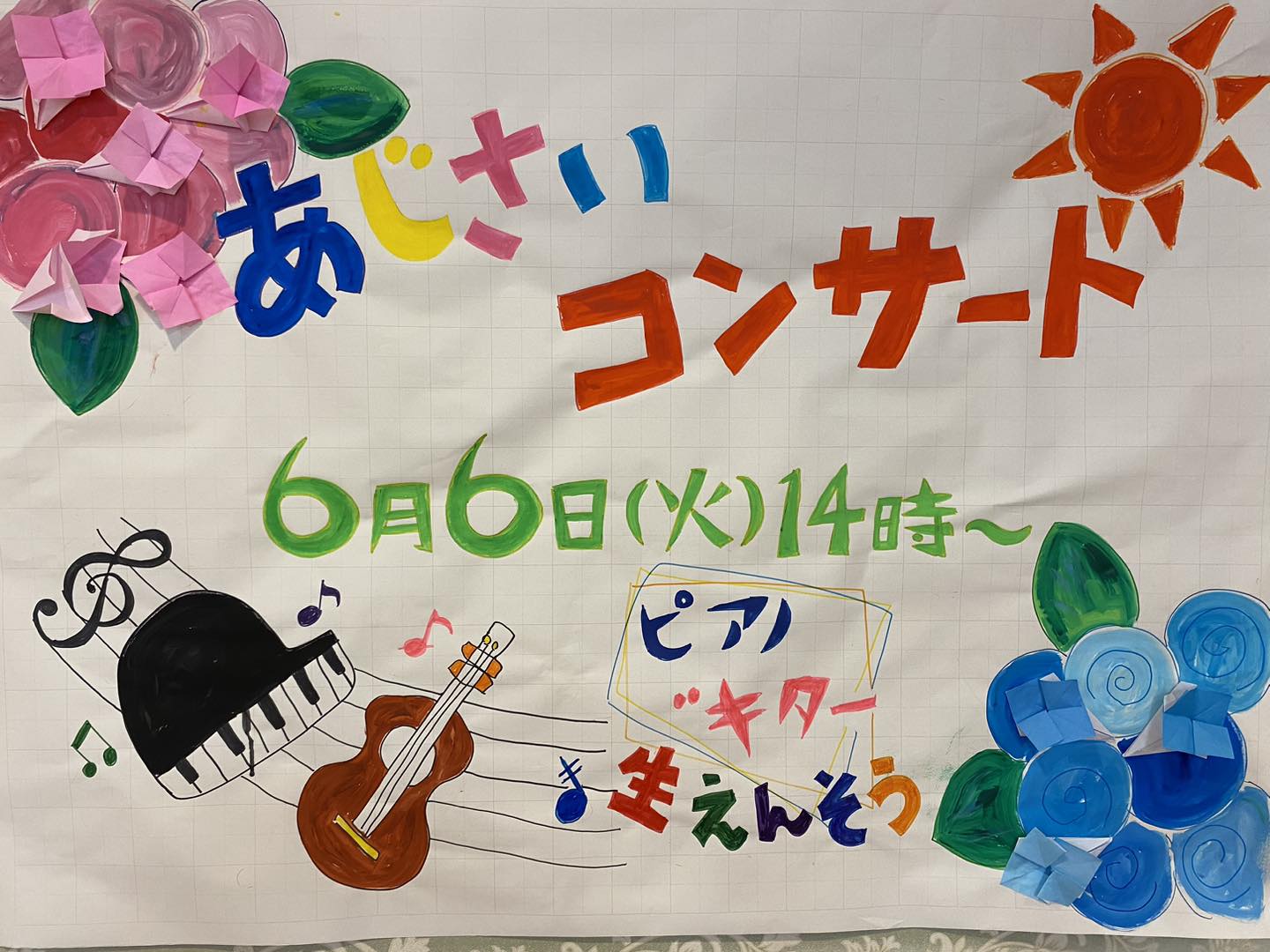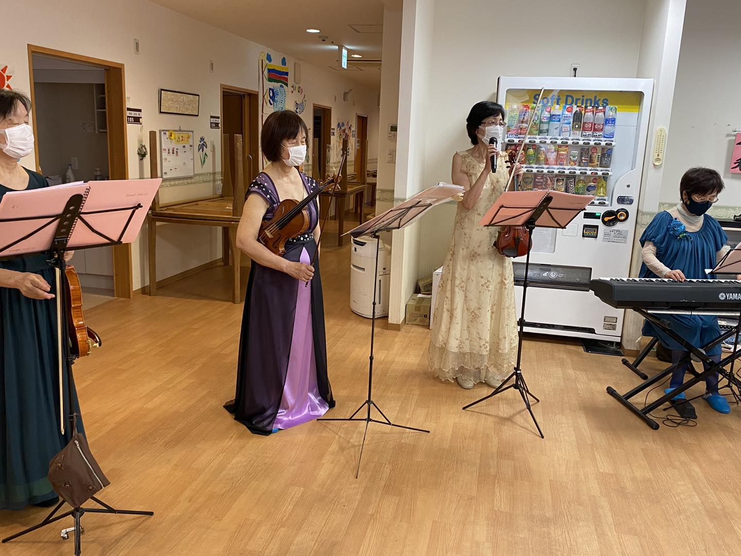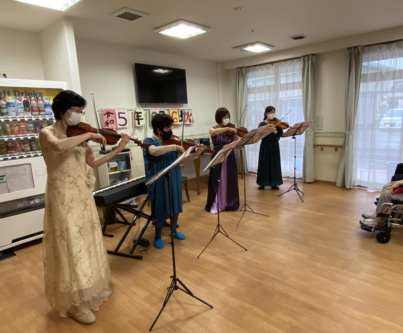 コロナの制限も緩和され、数年ぶりにボランティアさんに来て頂き、バイオリンやピアノの生演奏を聴きました