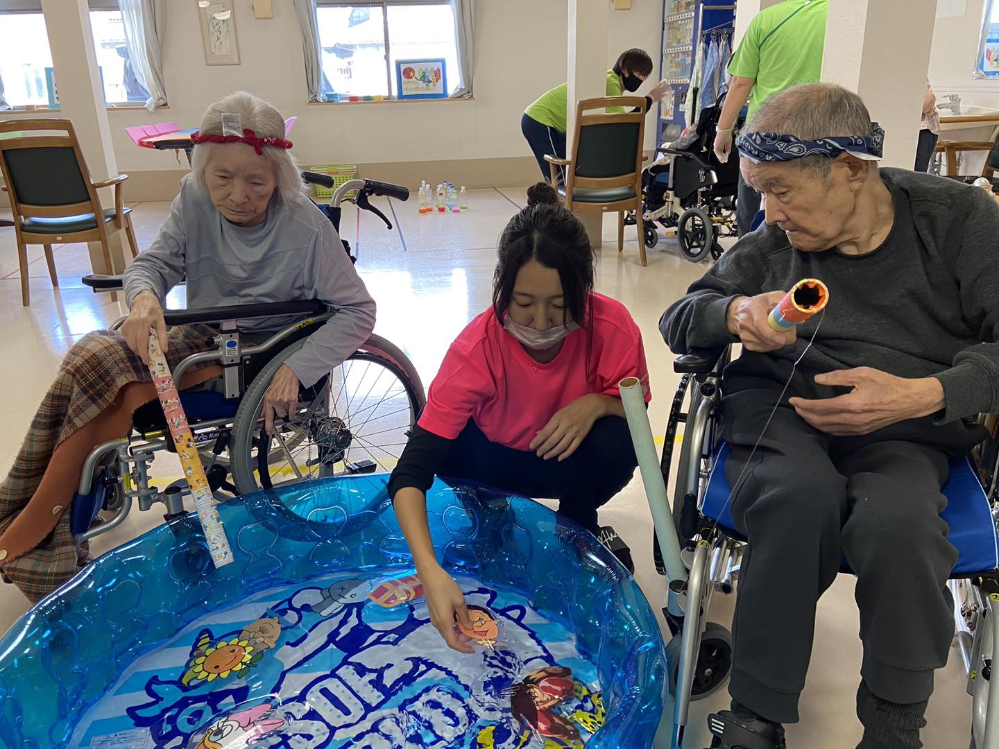 皆様、真剣にボールを投げたり、釣りを楽しんだりと、笑顔と笑いが絶えないひと時でした