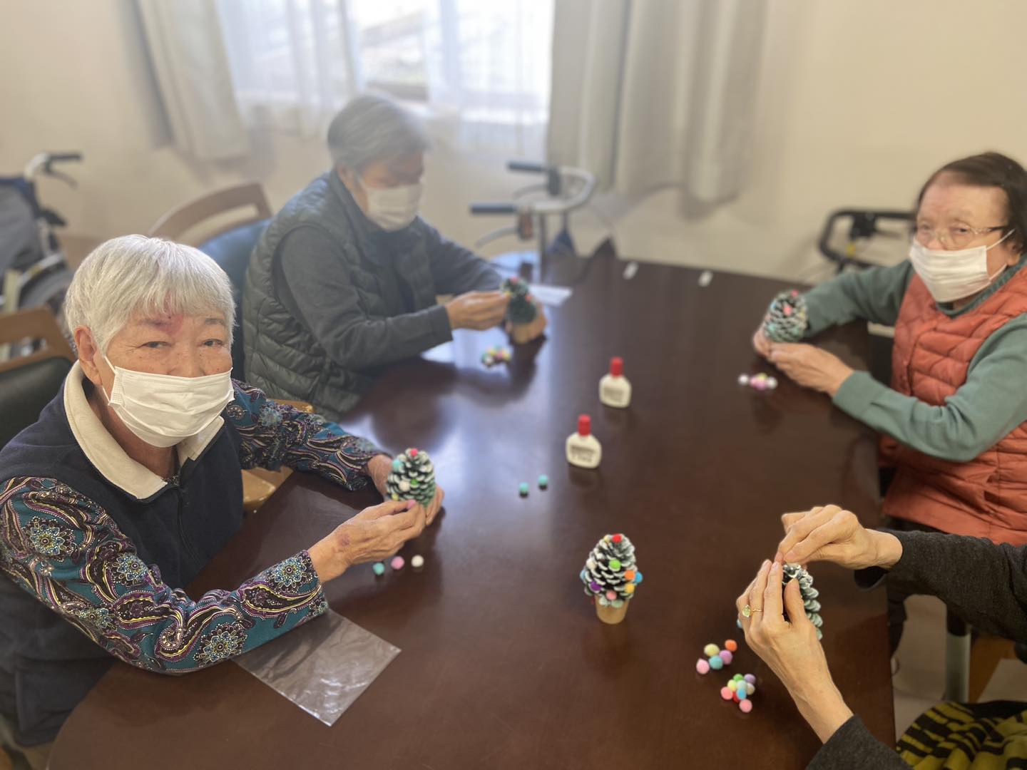 今回レクリエーションで作ったクリスマスツリー🎄は利用者さんのお部屋に飾らせていただきました☺️