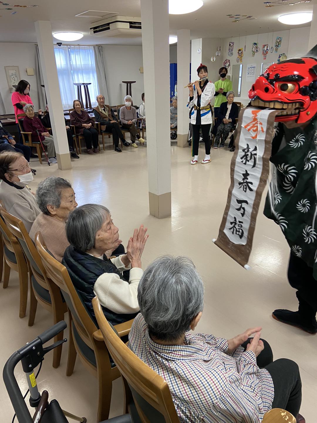 元日の朝より利用者様が楽しみにしておられた「獅子舞」がやってきました