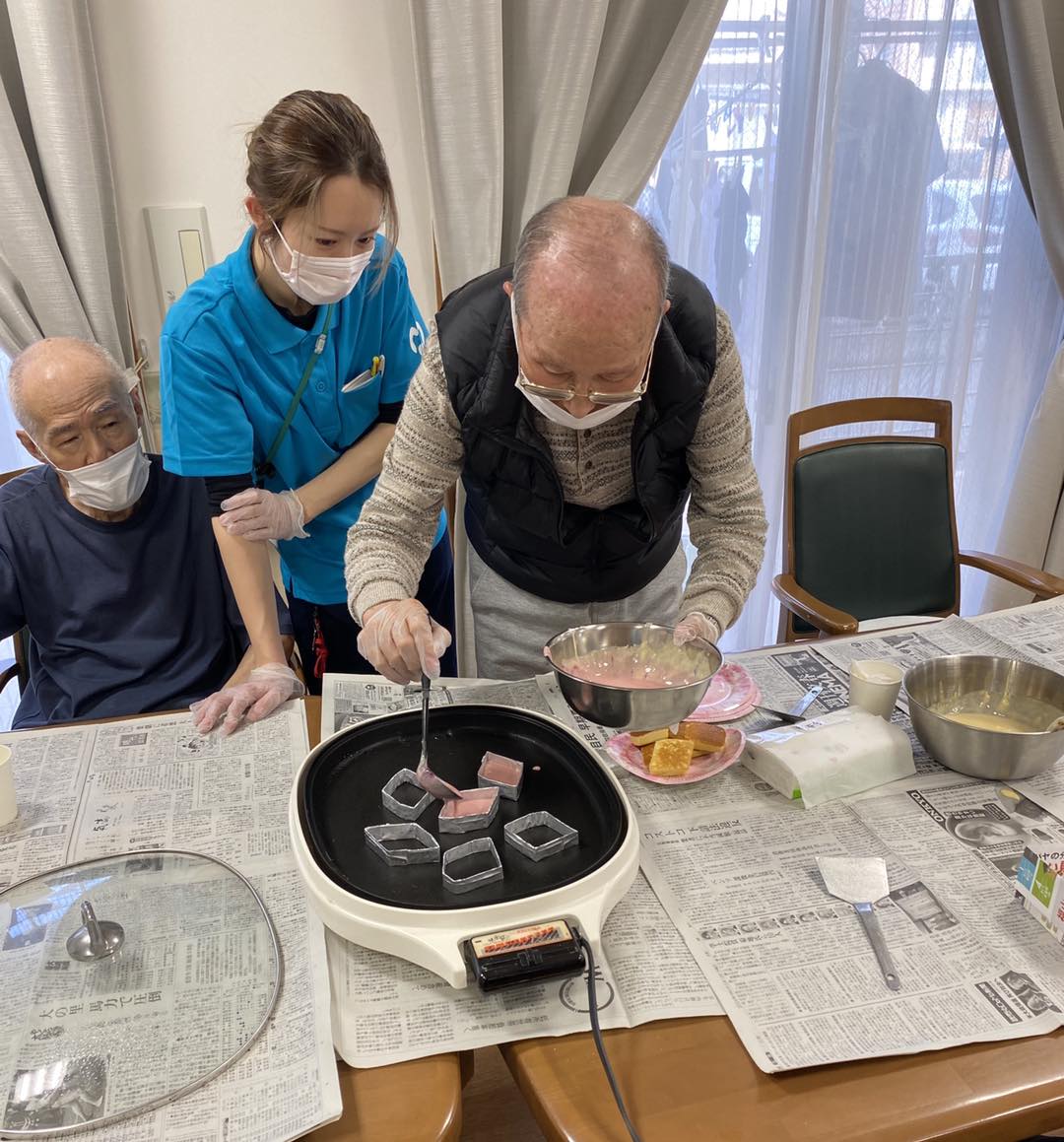 生地を混ぜたり、慎重に型に流したり、ひっくり返したり‥和気あいあいと楽しみながら作りました