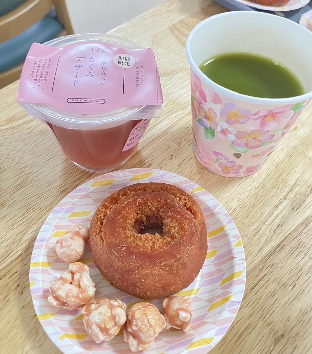 桜の香るおやつと抹茶で春のお茶会風
