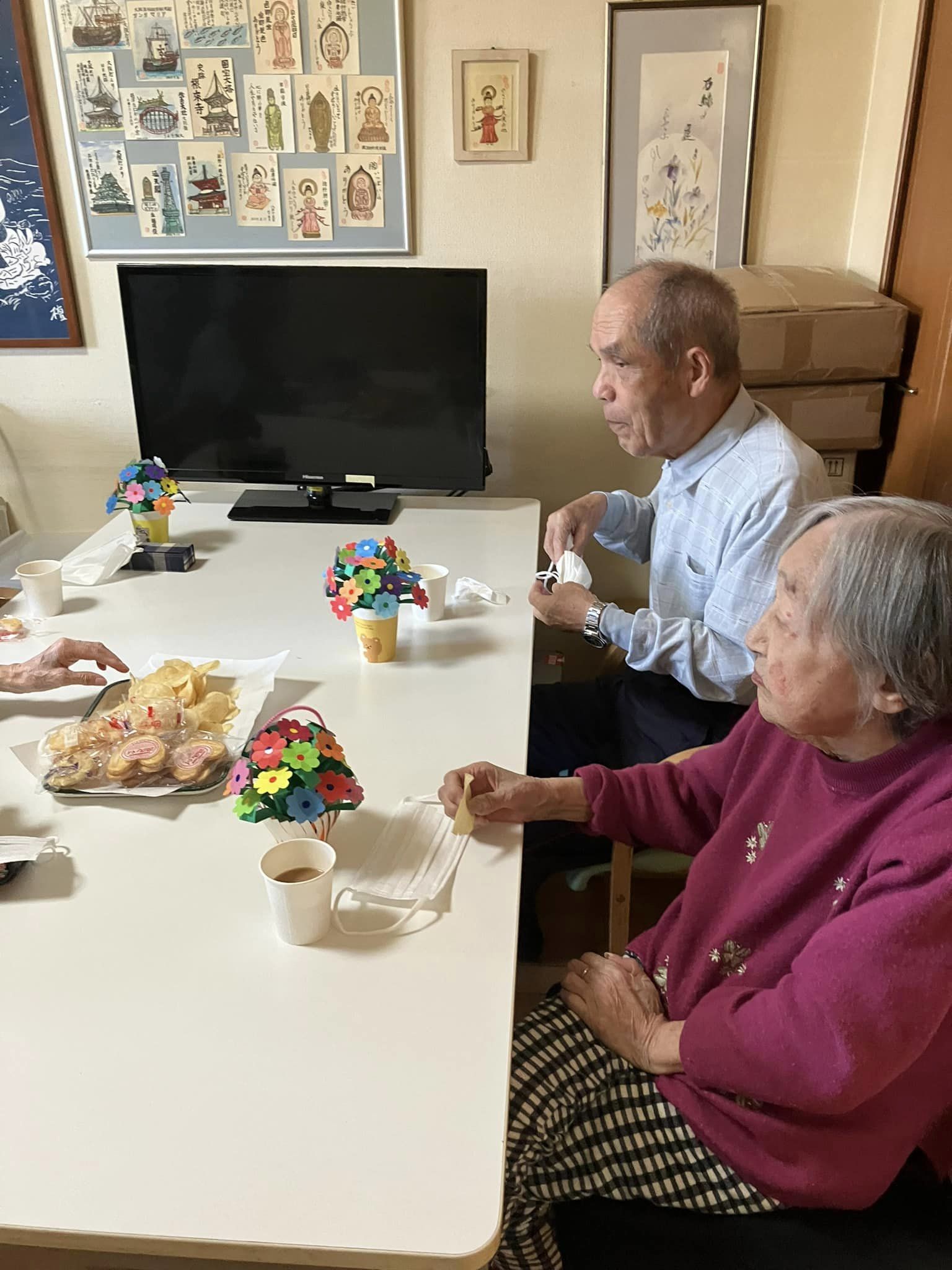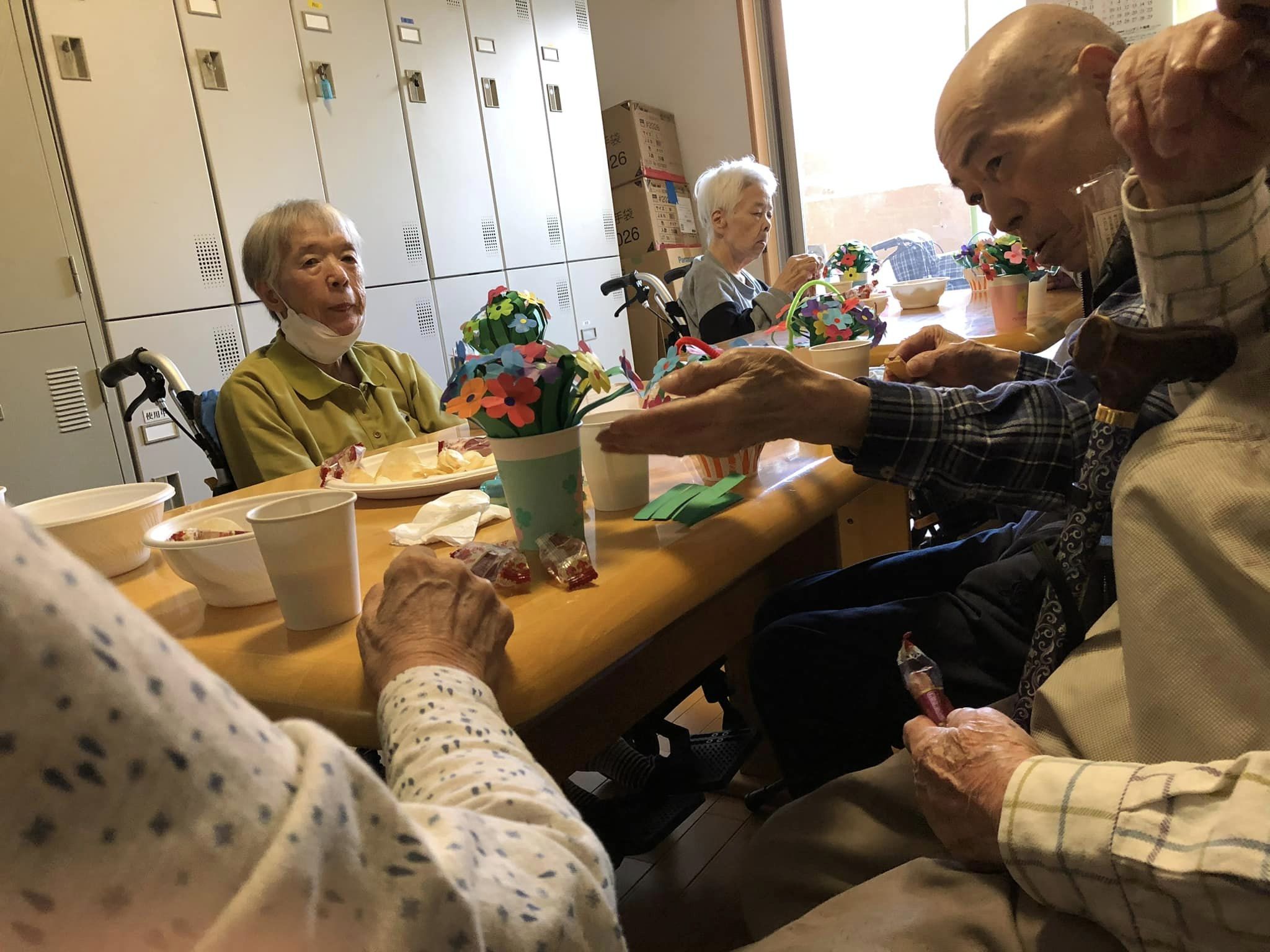 まごのて花園で紙コップで花籠を作りました🌸😊👏