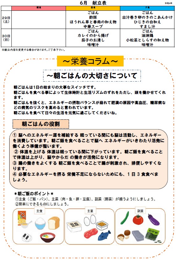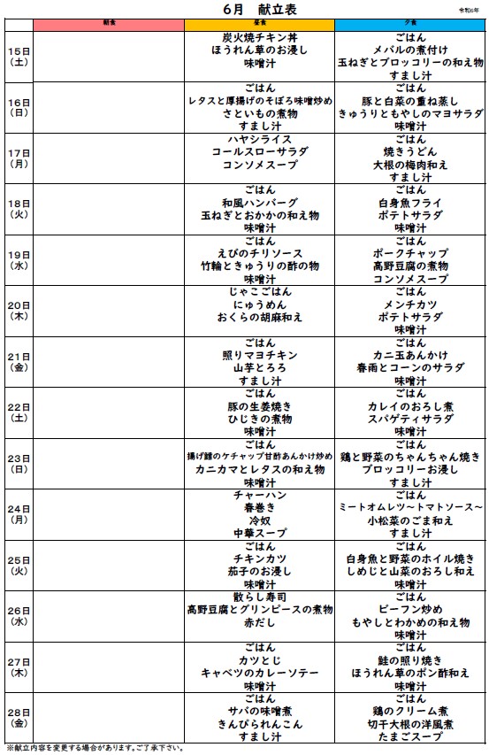 今月も栄養を考えられた献立表が届きましたので、お知らせいたします!