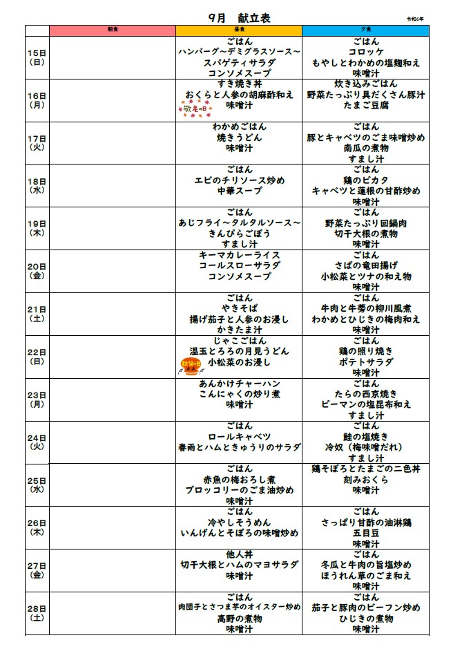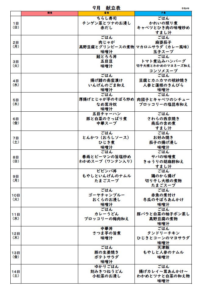 今月も栄養を考えられた献立表が届きましたのでお知らせいたします!🍧